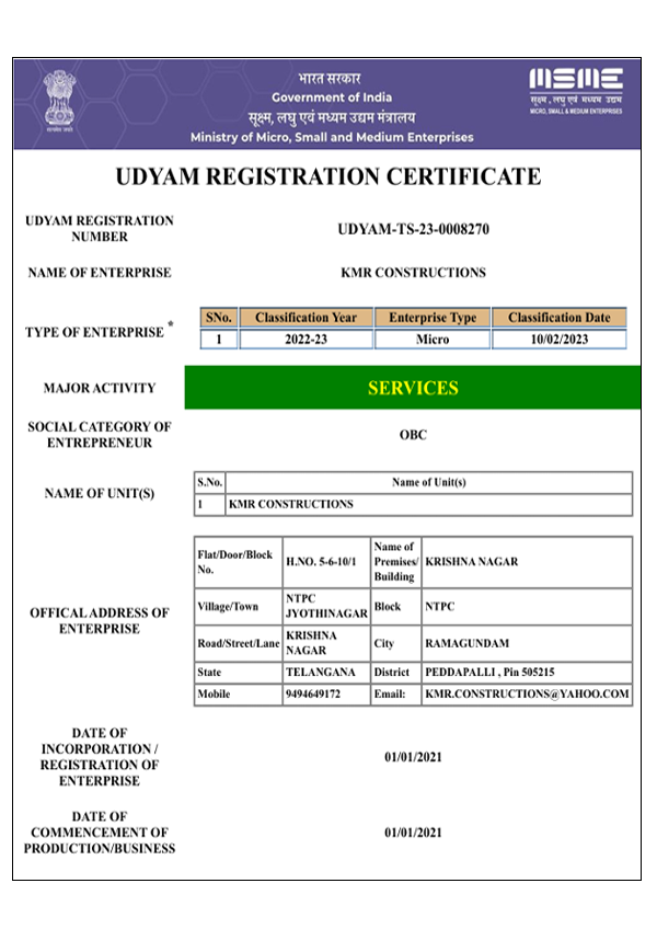 KMR CONSTRUCTIONS Built on Trust, Focused on Quality...